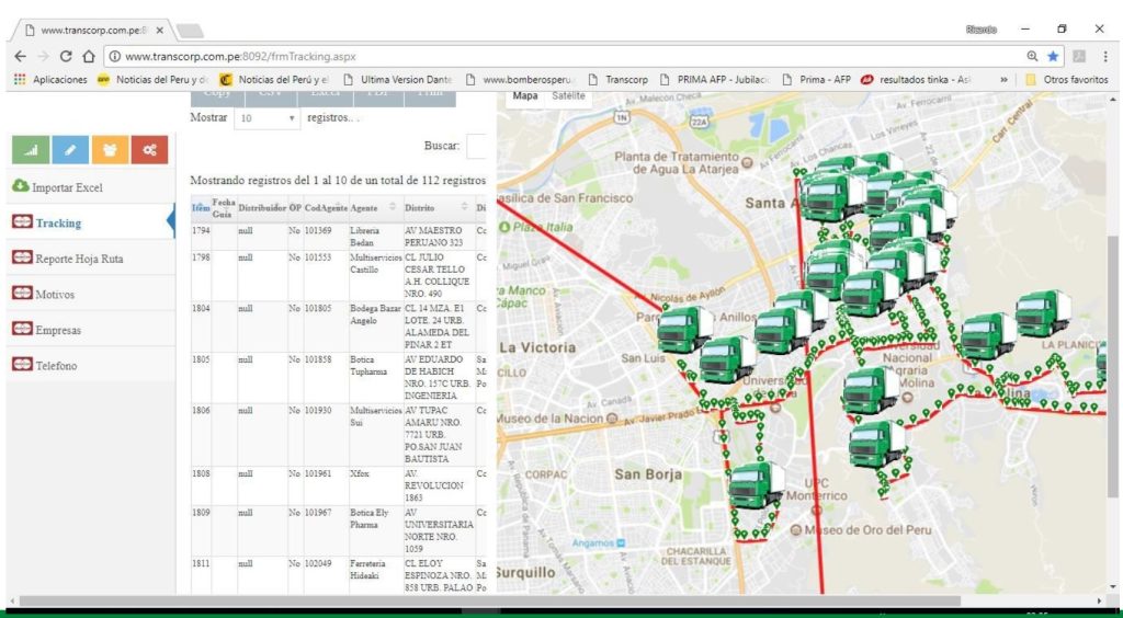 - Tracking en línea de las unidades móviles (Web).
